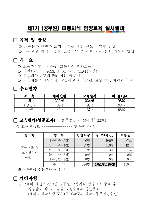 제2023-1기 공무원 교통지식함양교육 결과보고